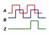 增量編碼器依賴于外部電路根據(jù)編碼器產(chǎn)生的計(jì)數(shù)計(jì)算位置。增量編碼器的輸出形式可以為單方波(A)、正交方波(A和B,可判斷旋轉(zhuǎn)方向)、或帶索引或每圈一個(gè)脈沖的正交方波(A、B和Z)。采用正交方波判斷旋轉(zhuǎn)方向的方法常被稱為“正交法”。
